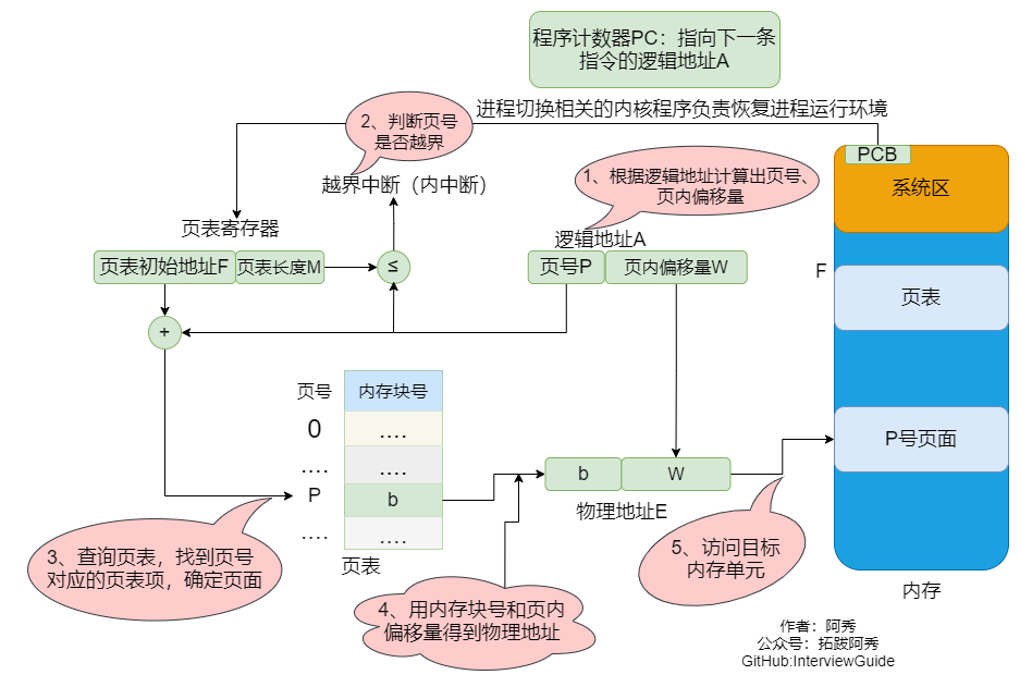 这些页被映射到物理内存,但不需要映射到连续的物理内存,也不需要所有页都必须在物理内存中。当程序引用到不在物理内存中的页时,由硬件执行必要的映射,将缺失的部分装入物理内存并重新执行失败的指令。